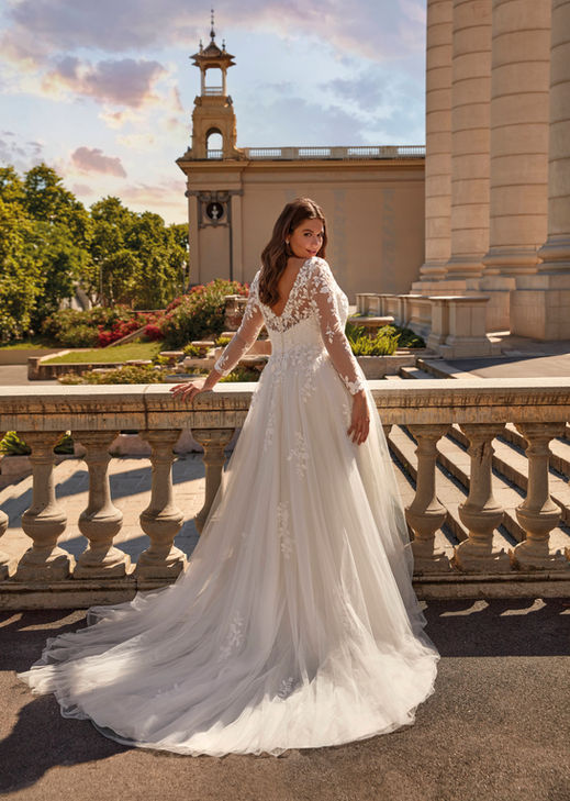 Évoquant les contes de fées, nos robes romantiques enveloppent les mariées de douceur et de magie. Volumes généreux, corsets ajustés, et tulles vaporeux se mêlent à des ornements tels que des fleurs brodées ou des sequins scintillants. Ces modèles incarnent la féminité et la grâce, parfaits pour celles qui rêvent d’une entrée triomphale sous les regards émerveillés.